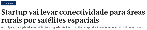 Em abril de 2023, 11 meses após sua fundação, a empresa participou do desafio de inovação da Confederação Nacional de Agricultura e Pecuária (CNA), e apresentou seu projeto de uso do espaço para aplicação na agricultura, com soluções de conectividade, garantindo o investimento da instituição para a empresa.